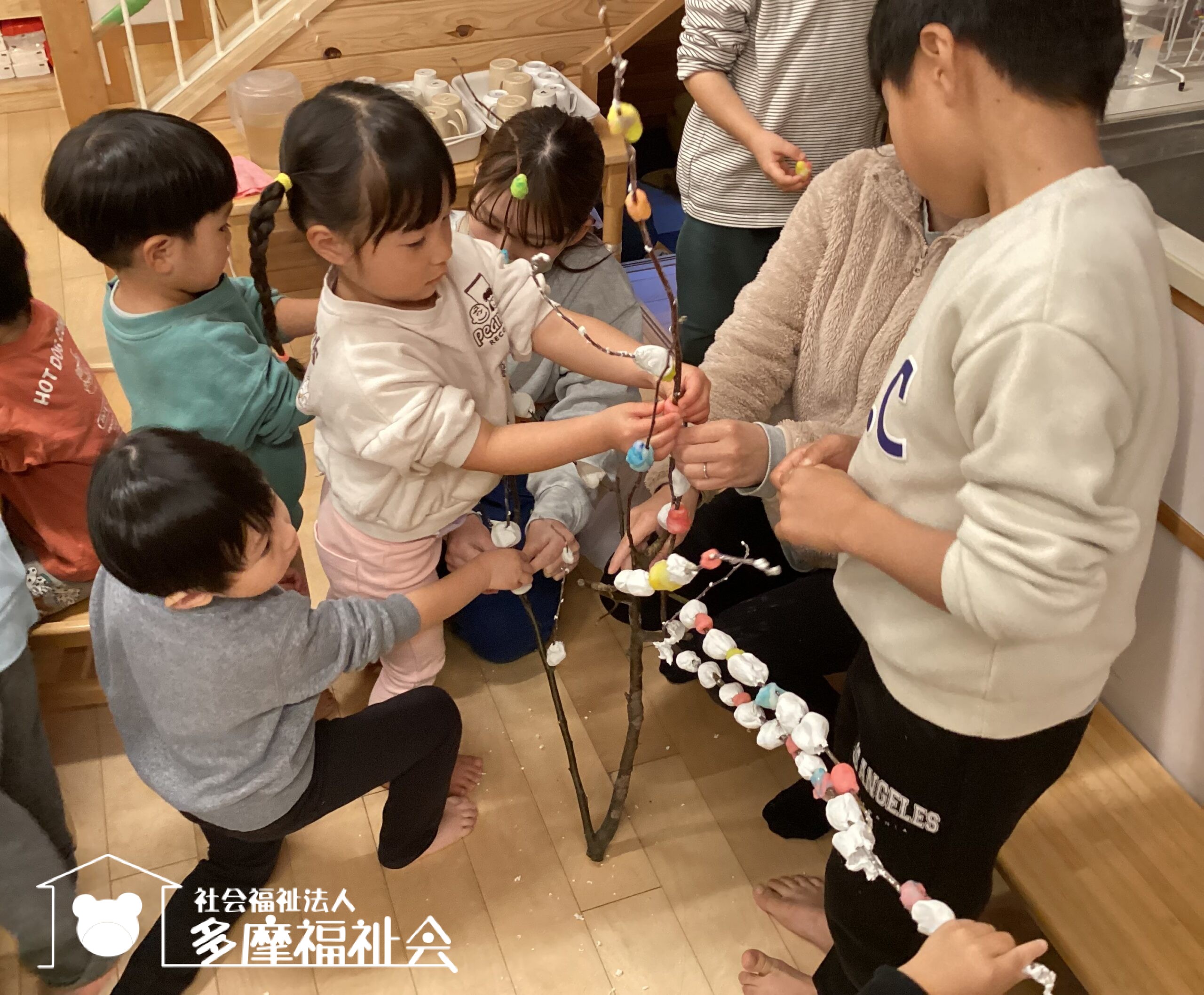 異年齢のおうちで、今年も餅花づくりを行いました!